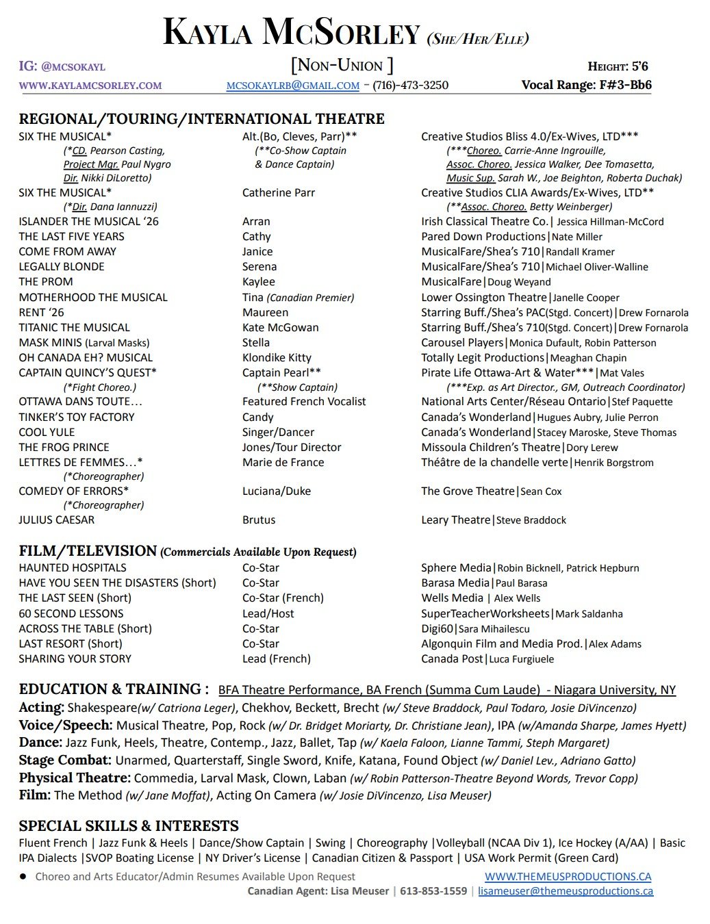 Canadian Agent🍁Lisa Meuser | 613-853-1559 lisameuser@themeusproductions.ca