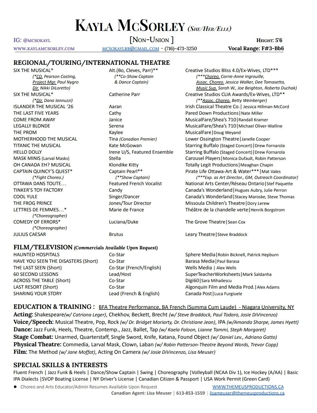 Canadian Agent🍁Lisa Meuser | 613-853-1559 lisameuser@themeusproductions.ca